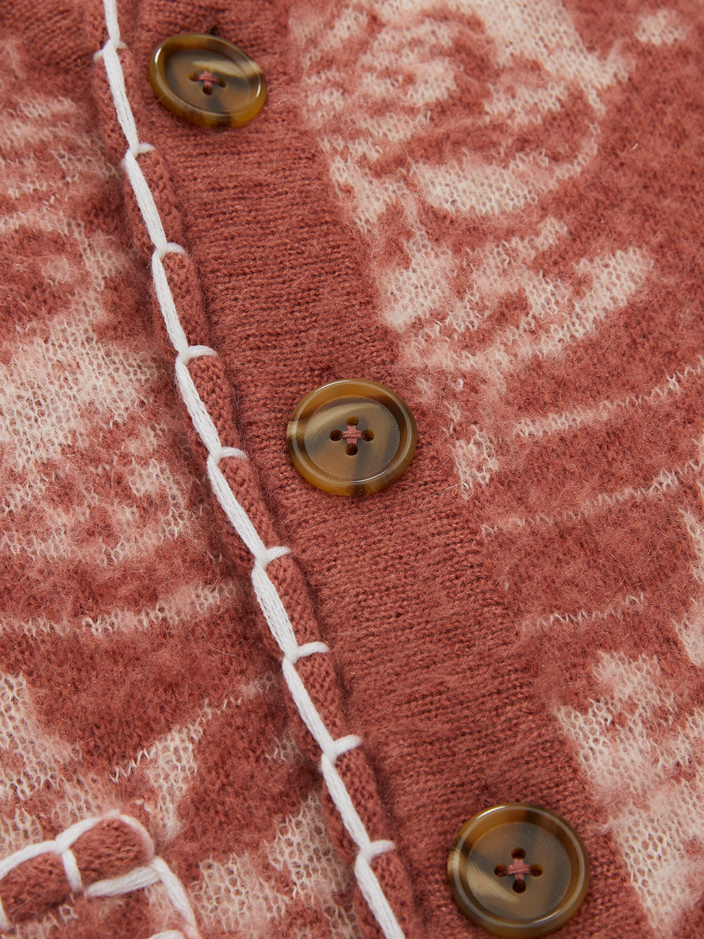 This vintage wool cardigan has a fluffy and soft feel, providing comfortable warmth.