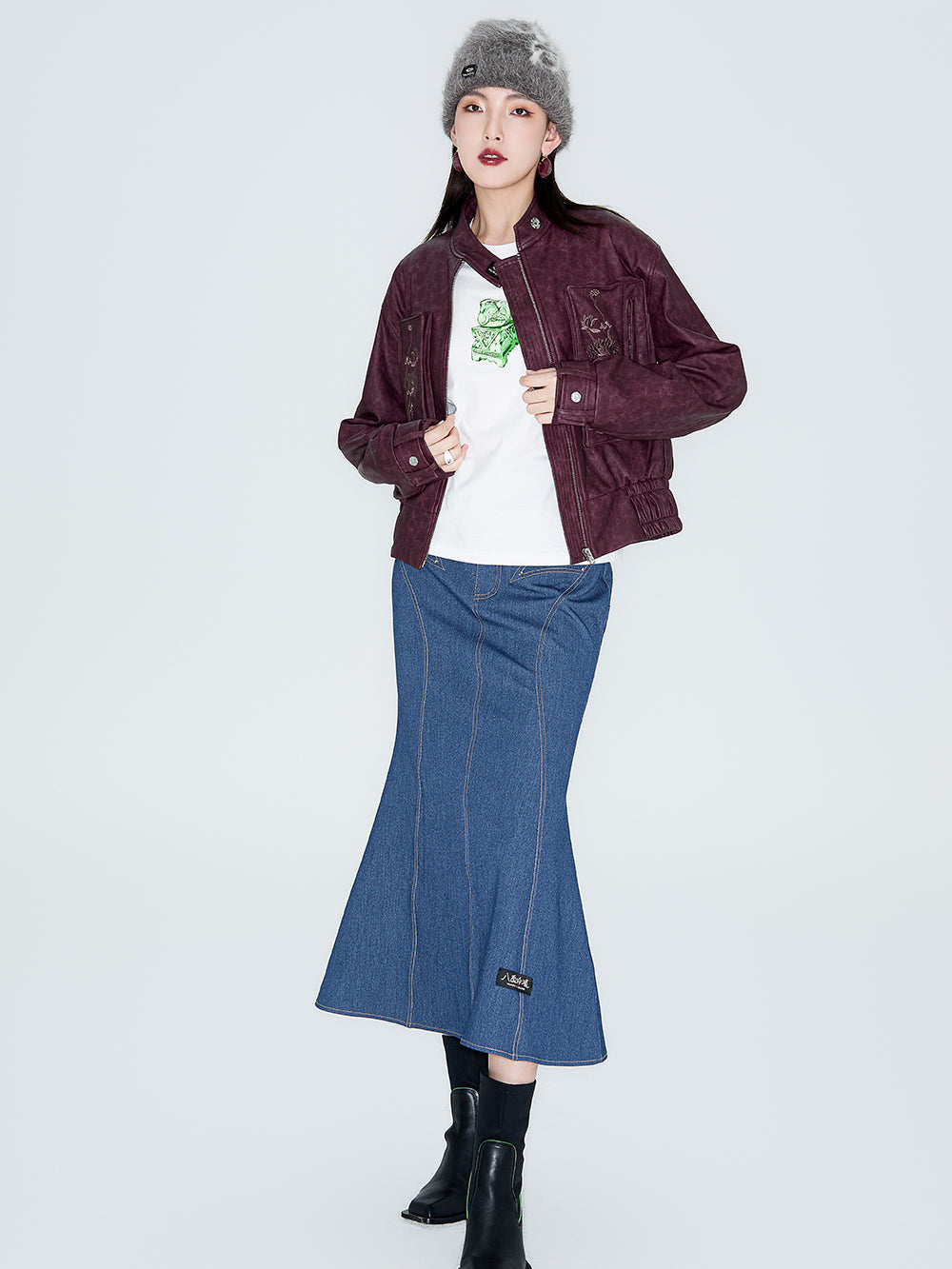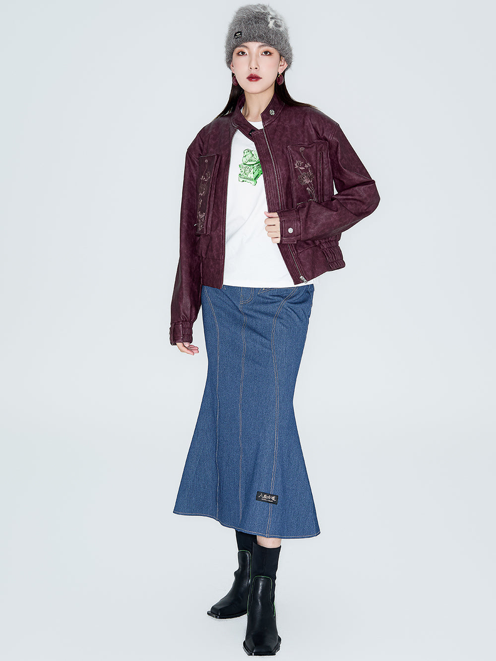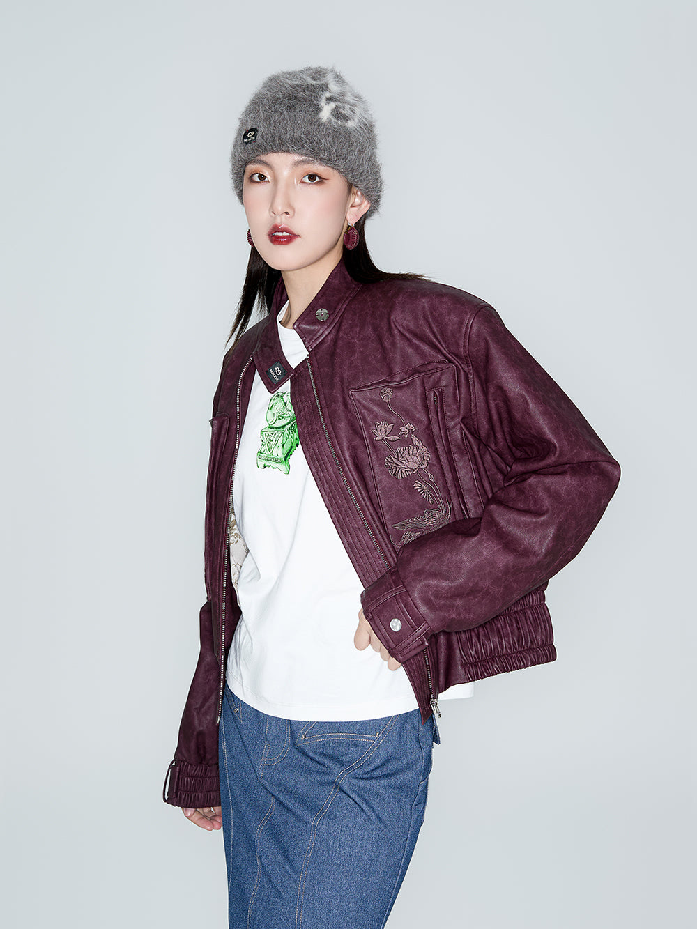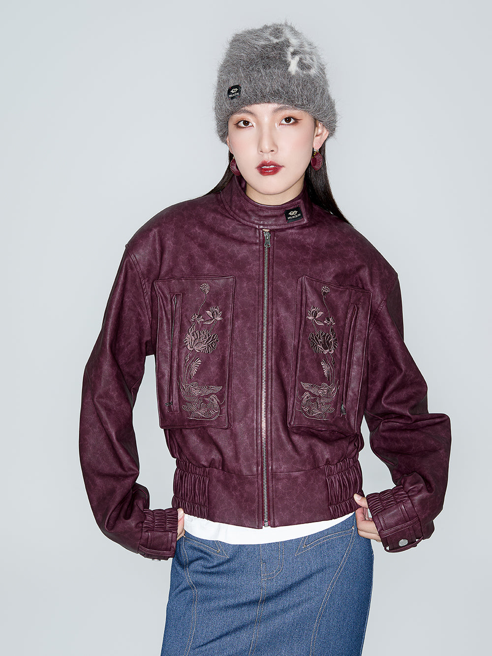 MUKZIN Linglong Wild Rose Vintage PU Motorcycle Jacket