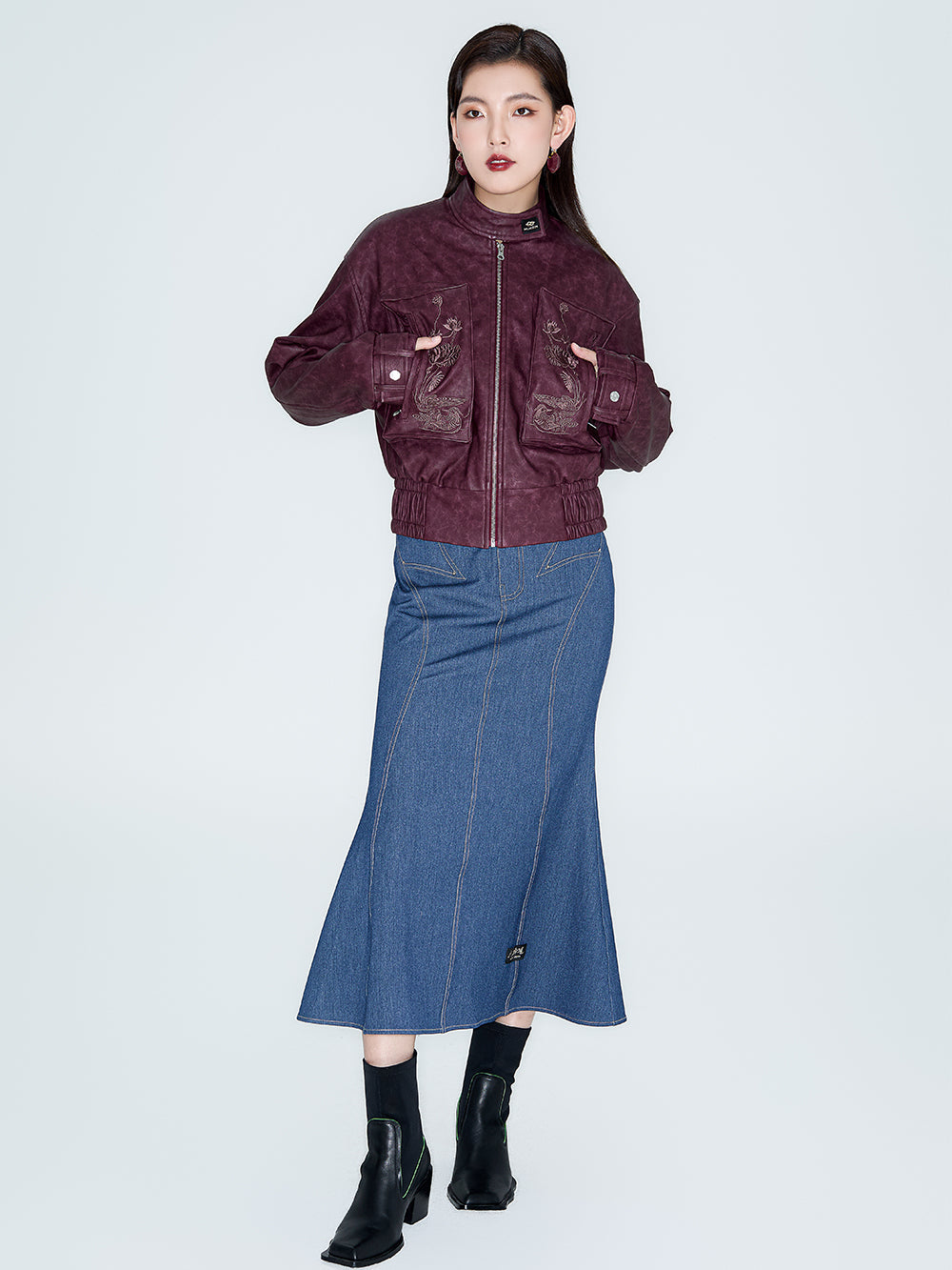 The washed PU fabric is classic and retro, soft and breathable. The combination of Ankola red and mandarin duck relief embroidery presents a high-end texture.