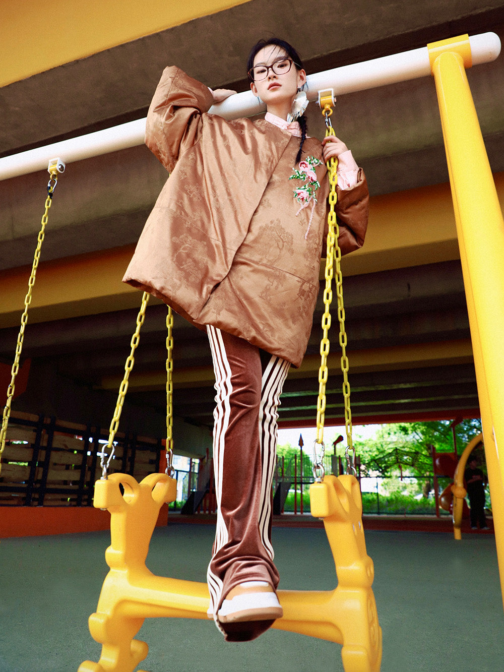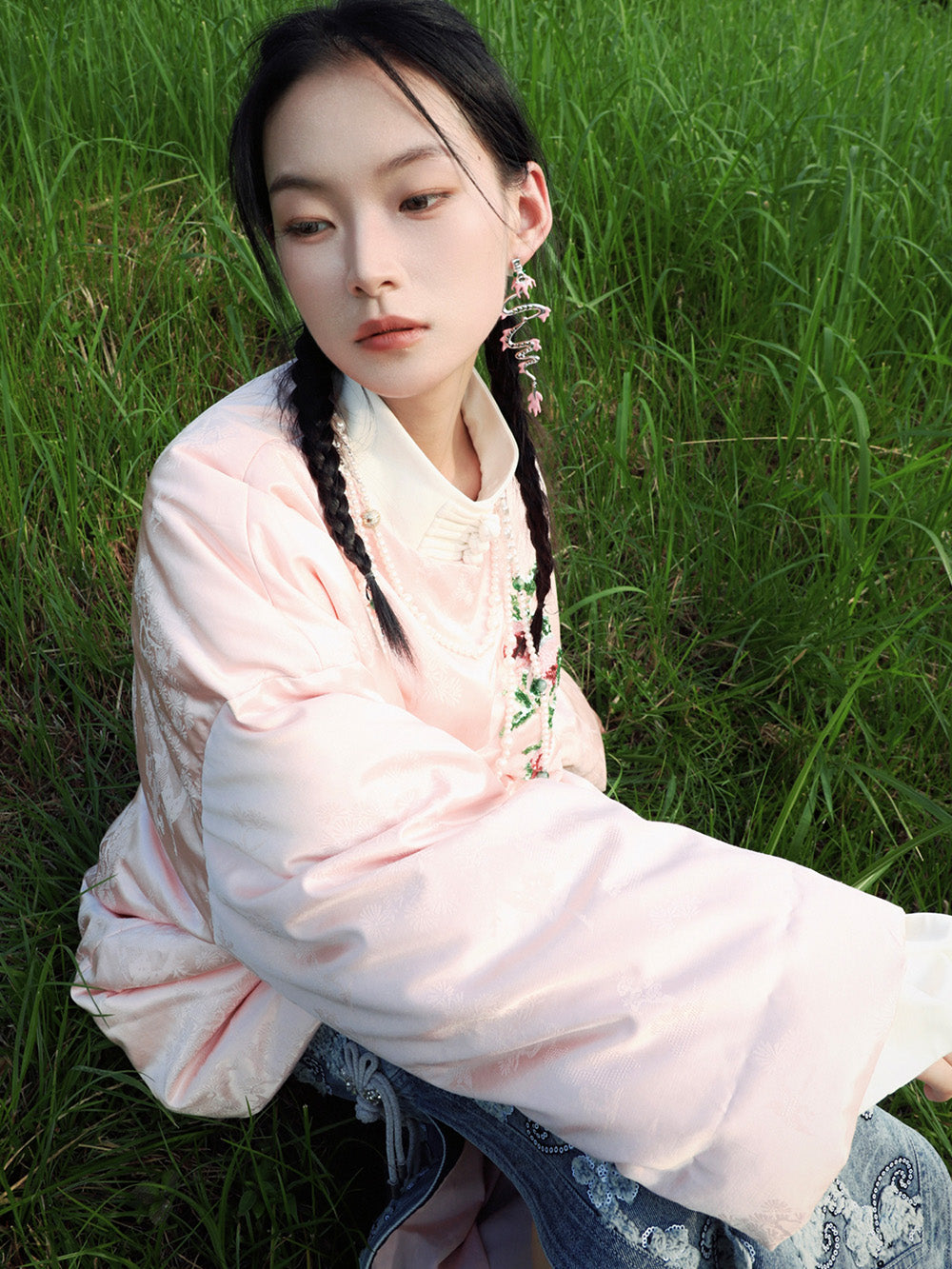 MUKZIN Velvet "Linglongzi"Embroidered Down Jacket with Large A-line Silhouette